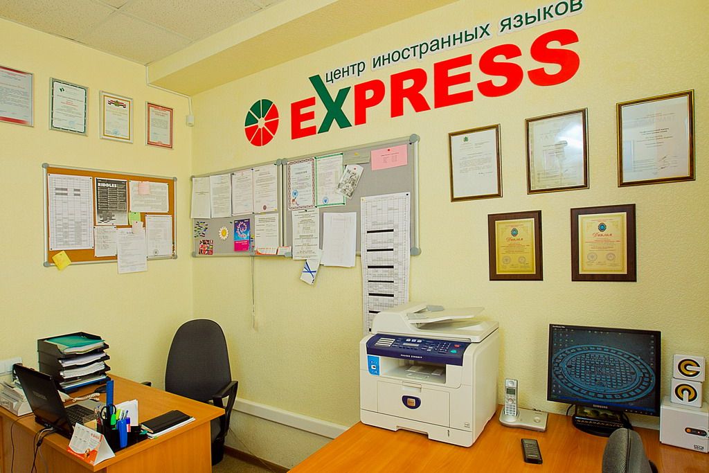 Добро пожаловать в Центр иностранных языков "EXPRESS". Сейчас мы находимся в главном офисе компании (№415). Логотип на стене, рекомендательные письма являются тому ярким подтверждением